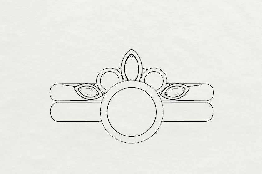 14kt palladium white gold, size 4.5. Marquise and round diamond crown band. Satin matte finish.