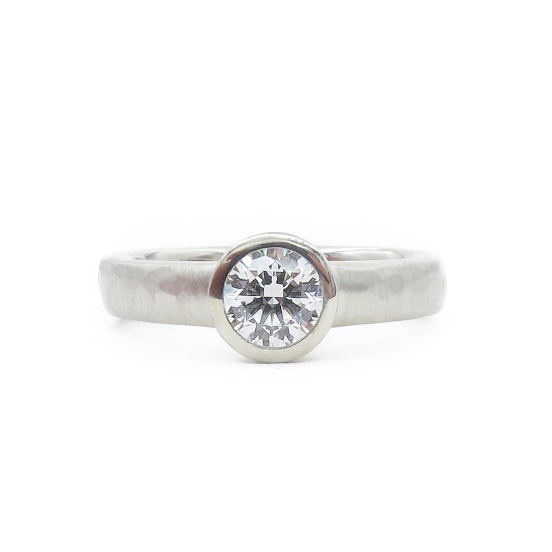 Bezel Set .50ct Diamond Engagement Ring With Hammered Texture, All Weather Low Profile Engagement Ring