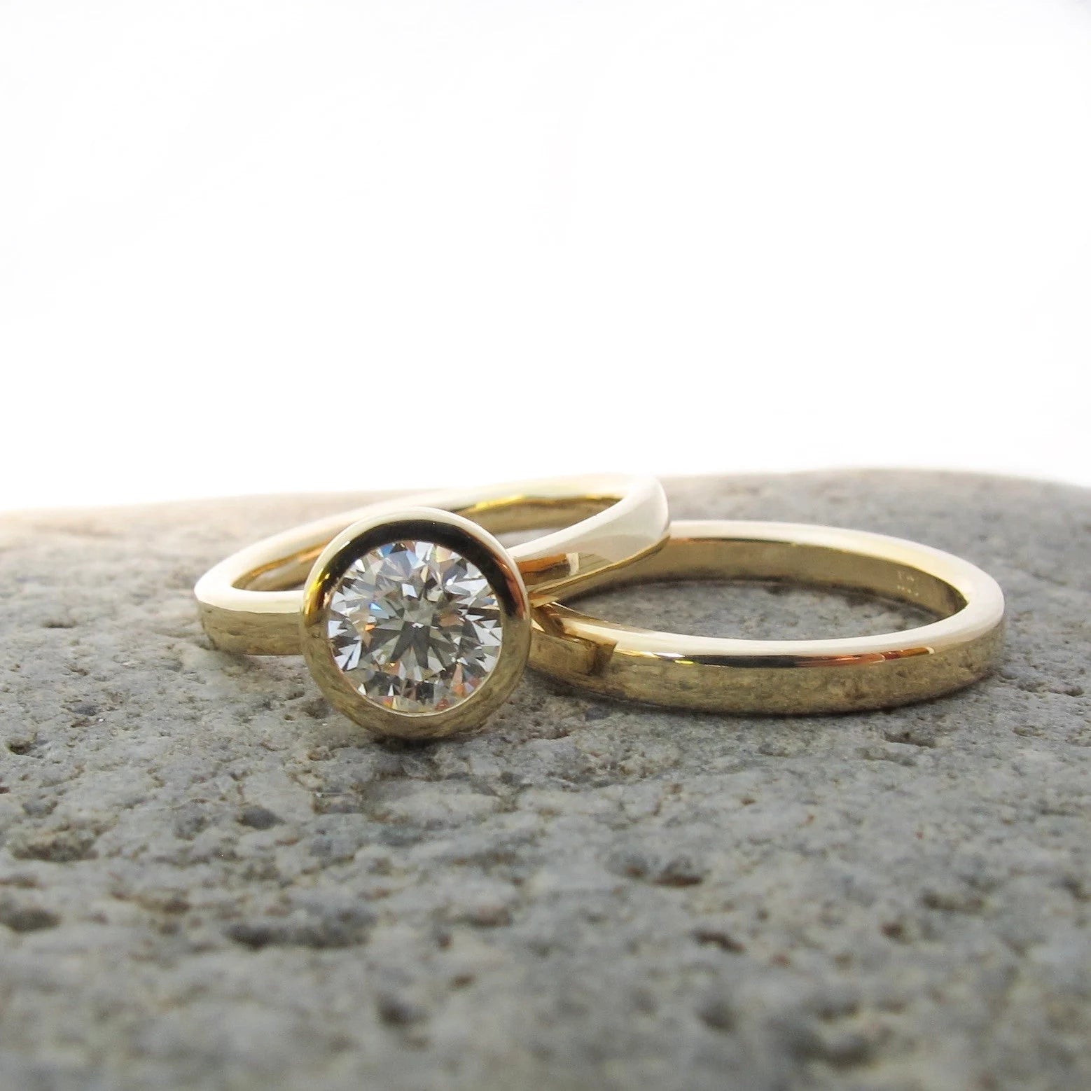 14kt yellow gold wedding band. 2.5mm width, 1.8mm height, size 6.25. High polish.