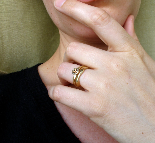 Solid precious metal in flowing, organically carved shapes. Right around 3.5mm at the widest points. This band pairs well with the matching solitaire, found here.