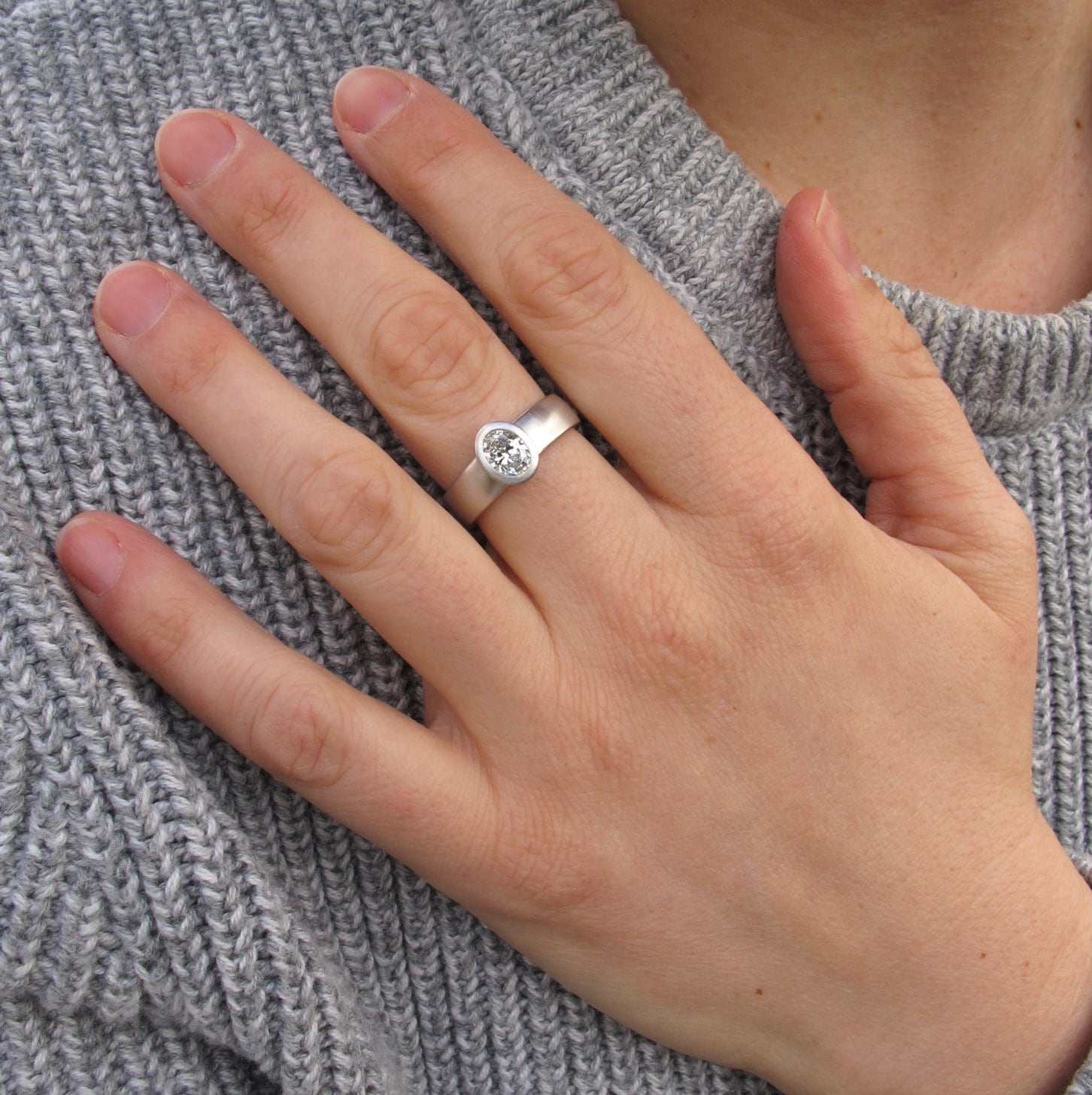 ShareOval diamond engagement ring, platinum wide band engagement, GIA certified diamond, low profile ring, minimalist engagement ring