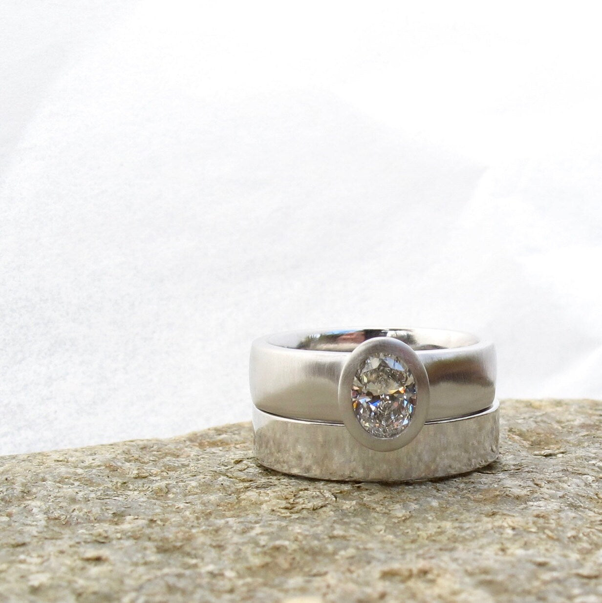 Oval diamond engagement ring, platinum wide band engagement, GIA certified diamond, low profile ring, minimalist engagement ring