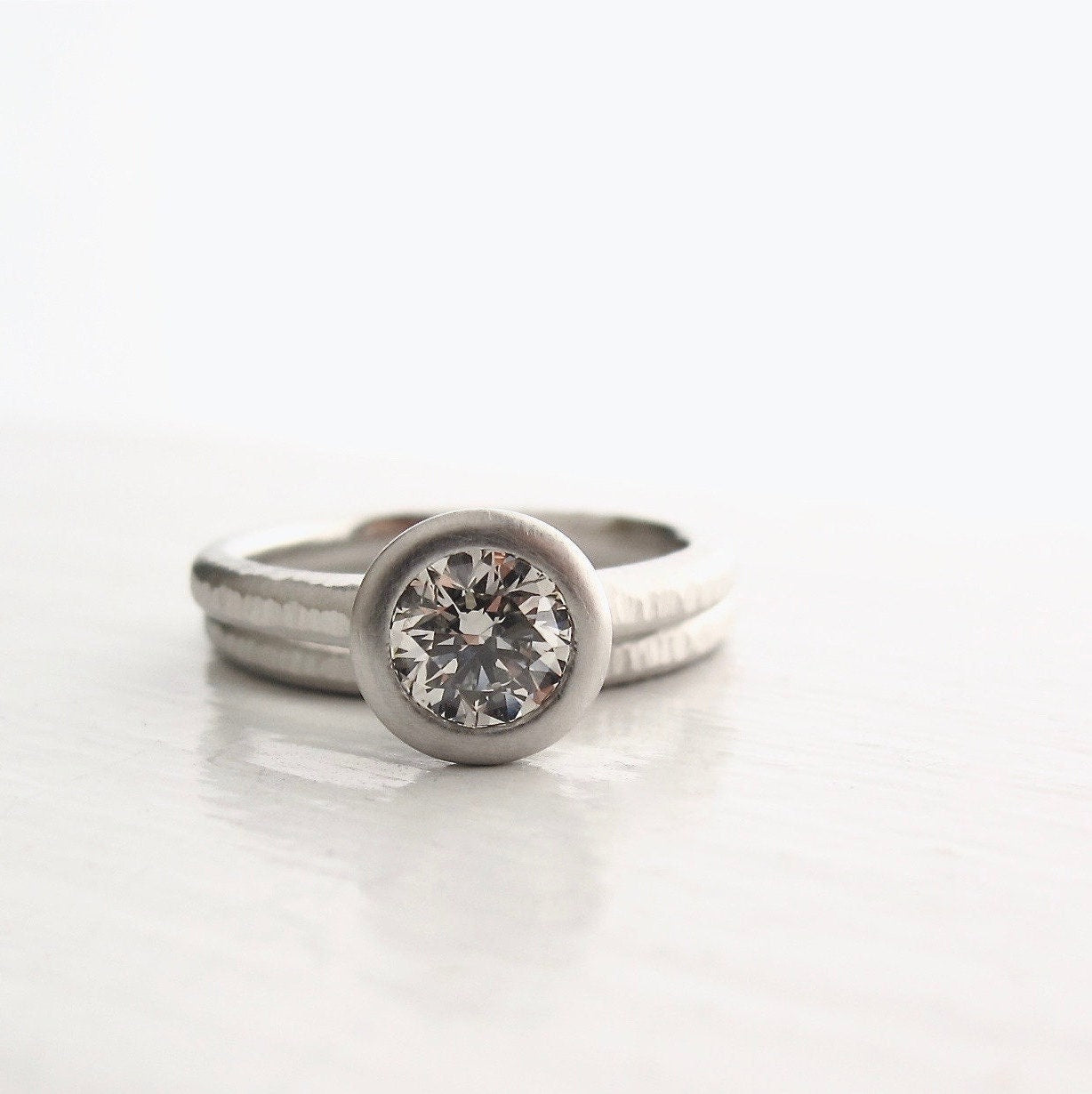 Pacific Ring, platinum open bezel diamond engagement ring with platinum wedding band, women's alternative engagement ring, peekaboo bezel