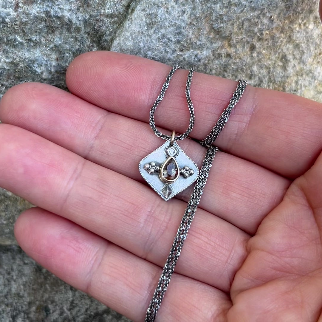 ShareSapphire & Silver Medallion Pendants | Mixed Metal Geometric Necklaces