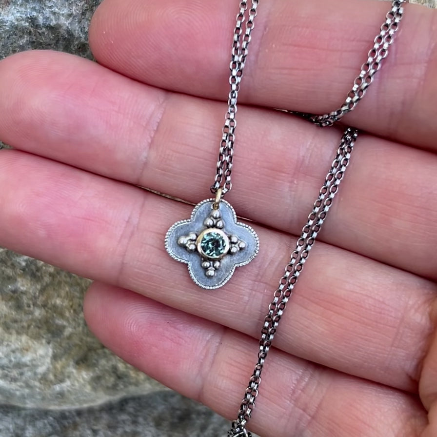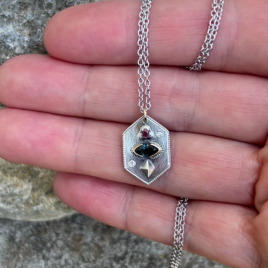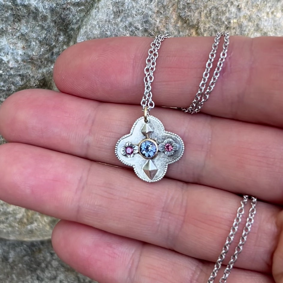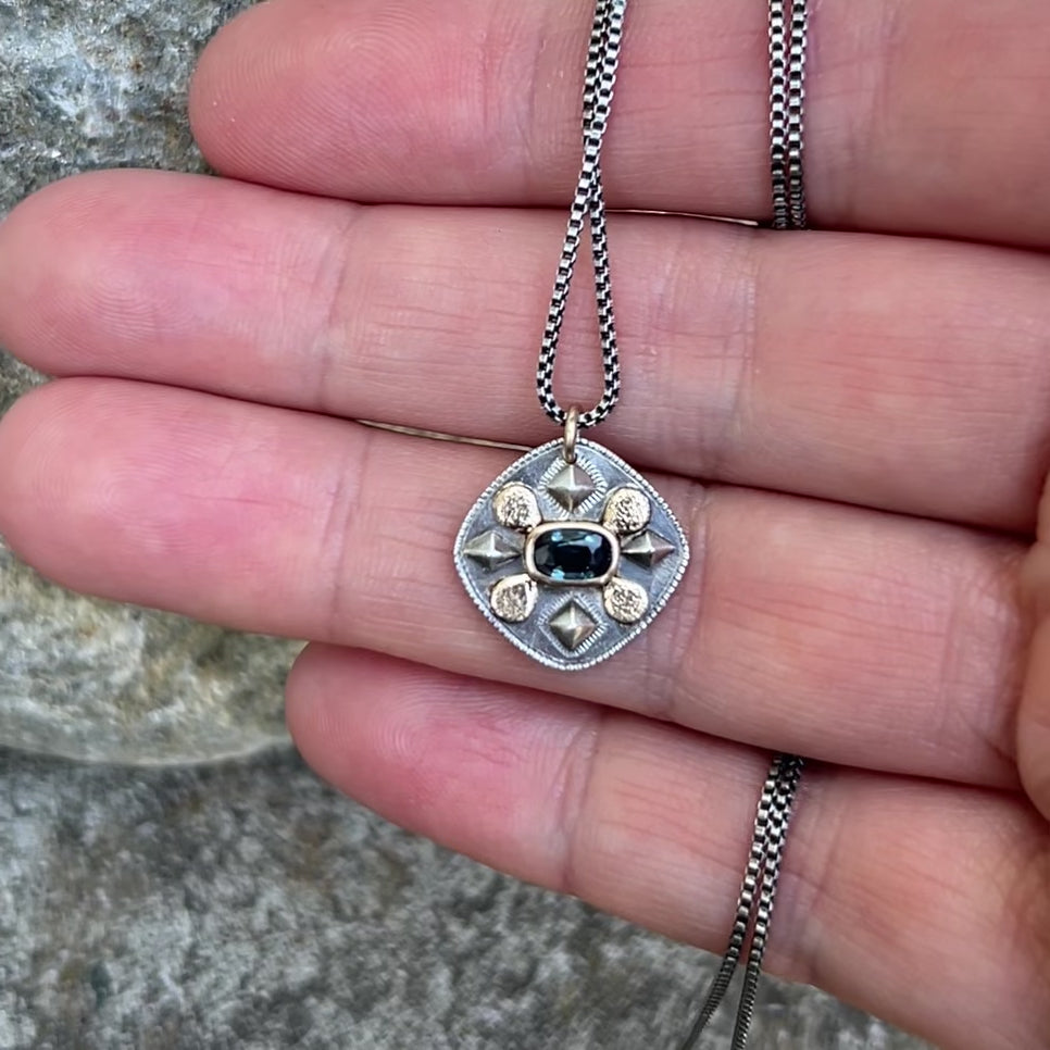 Sapphire & Silver Medallion Pendants | Mixed Metal Geometric Necklaces