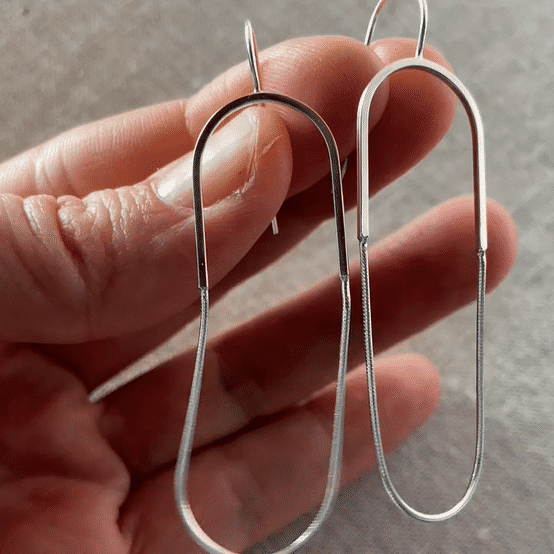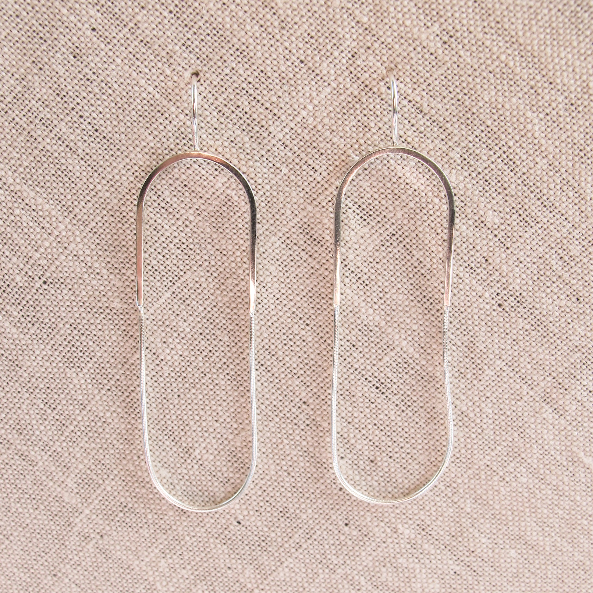 Sterling silver snake chain earrings. Half hoop, half chain. The lower portion has a fun swingy movement.