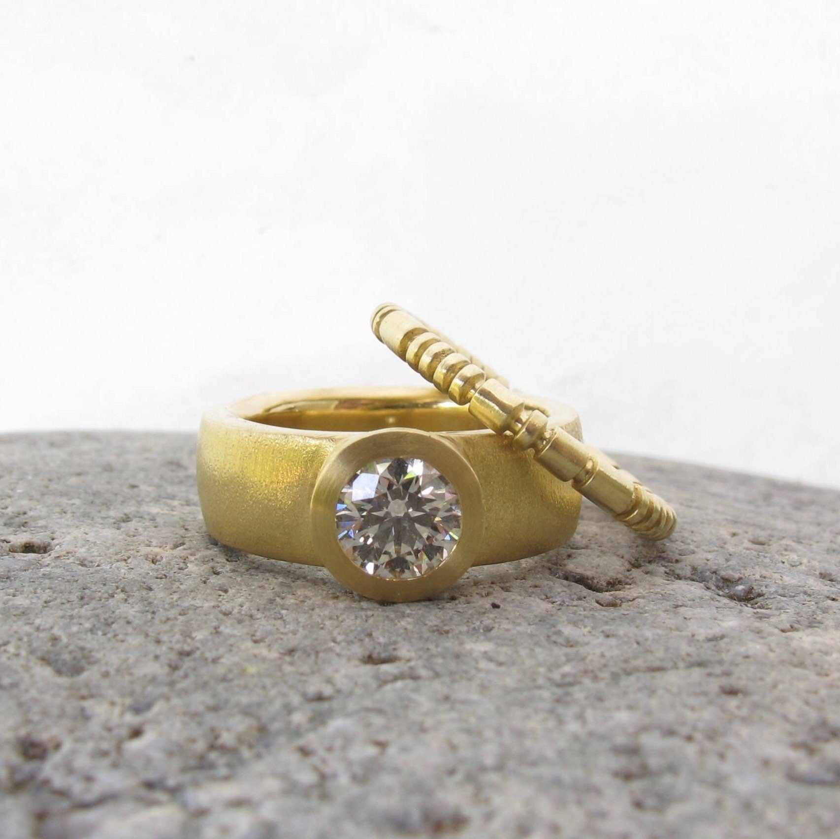 ShareSunken Treasure Ring, wide band engagement ring, 18kt diamond engagement ring, women's alternative wedding ring, GIA certified diamond