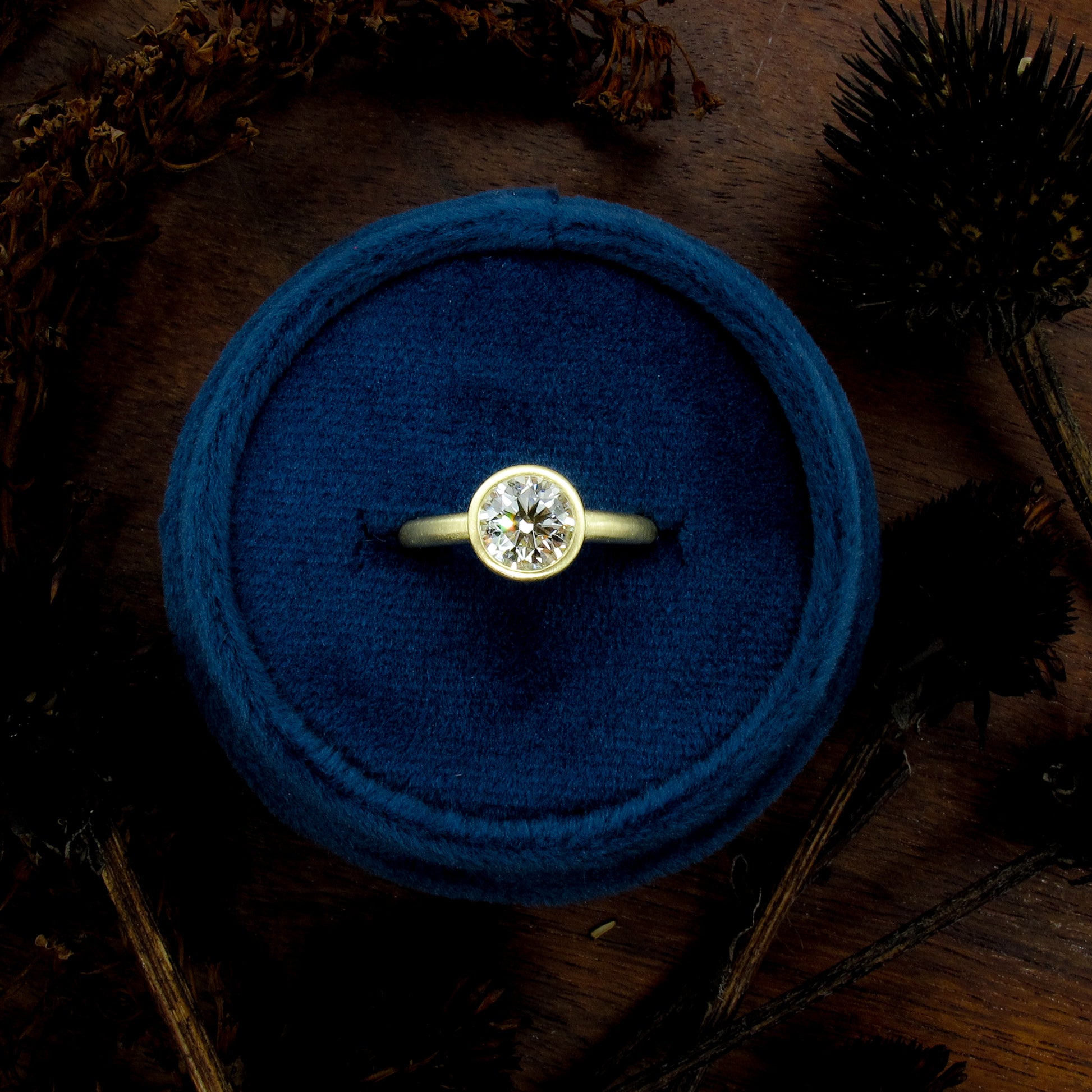 Choose your own natural or lab grown diamond for this minimalist bezel setting. Or we can hand select a diamond that will suit your budget. This style would also be suitable for moissanite, available here. This setting would be a great choice for sapphires and we would be glad to help you select the perfect stone.