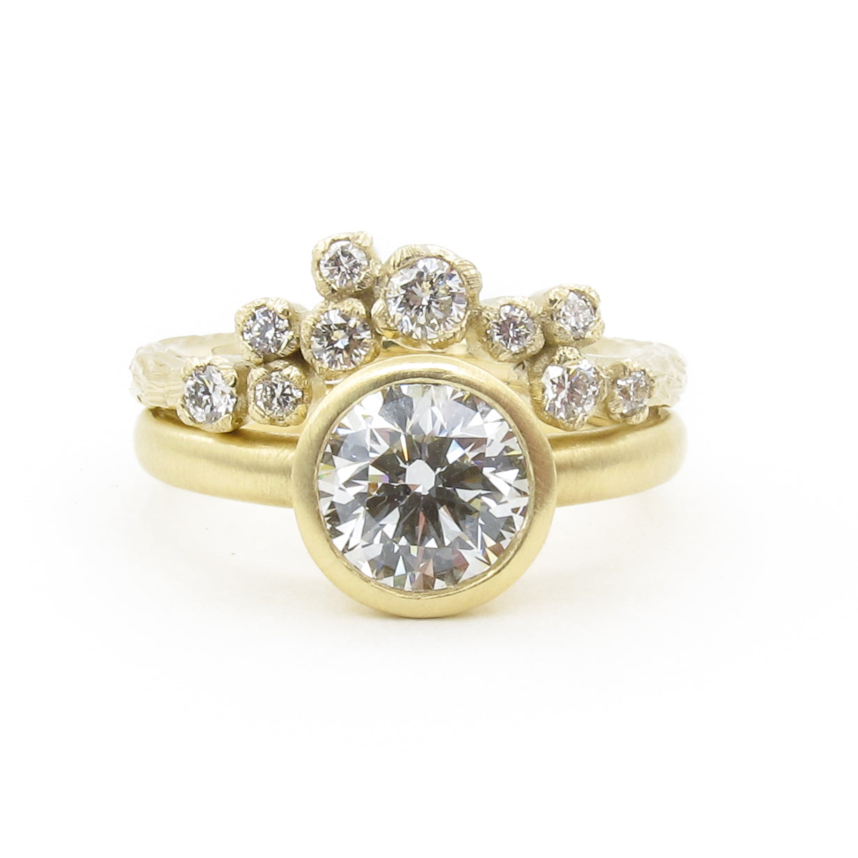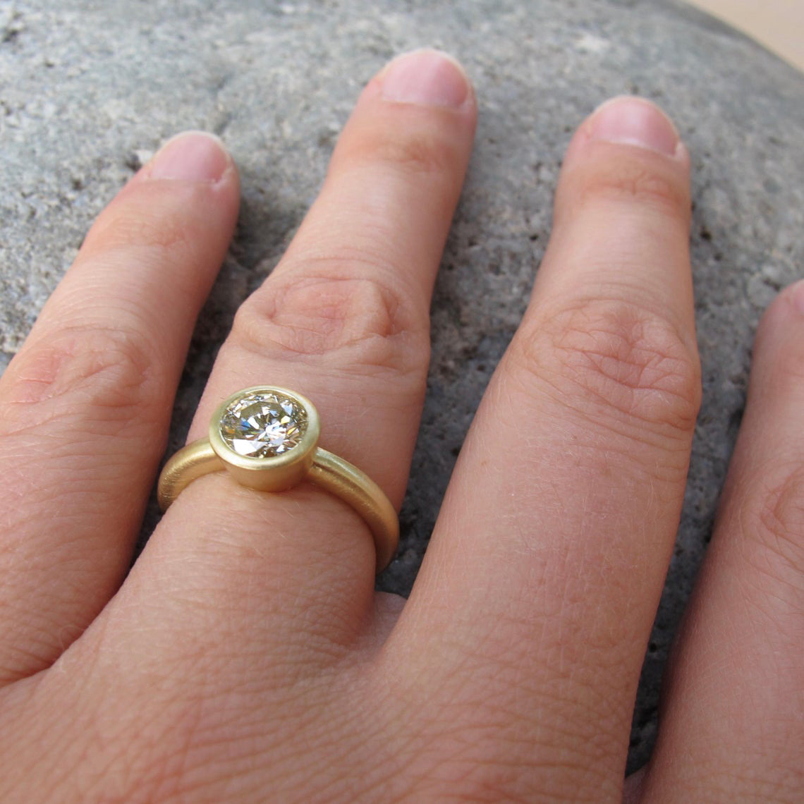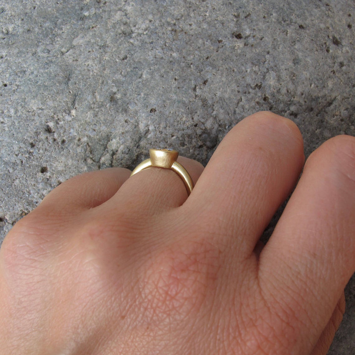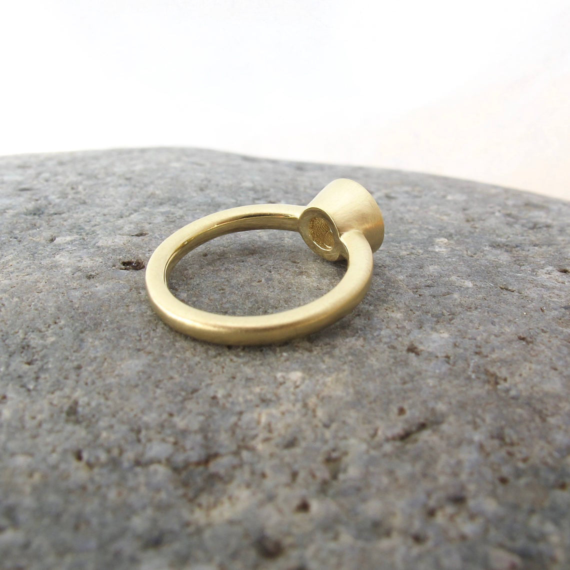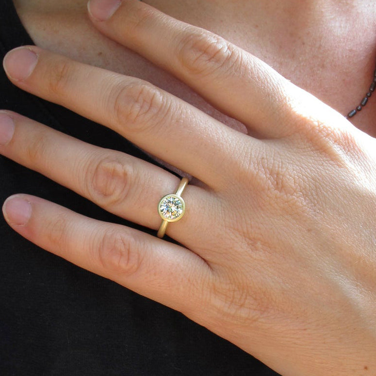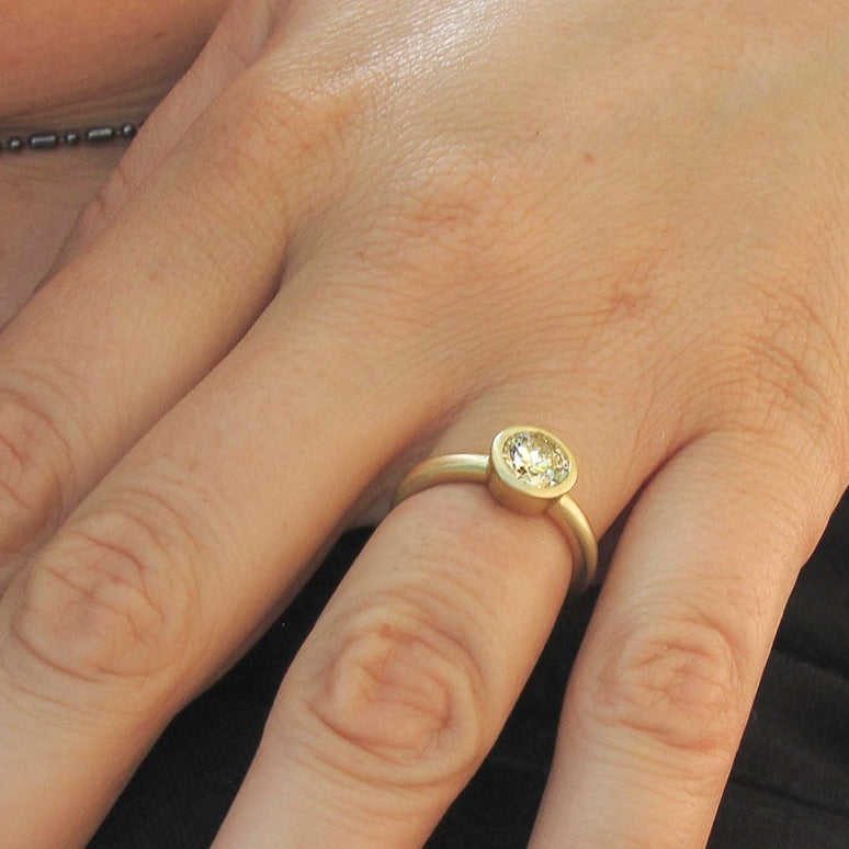 Modern and minimalist bezel setting. Super low profile and wearable, made in 18kt or 14kt yellow, rose, white gold, or platinum. Custom sized to fit your stone if you already have one.